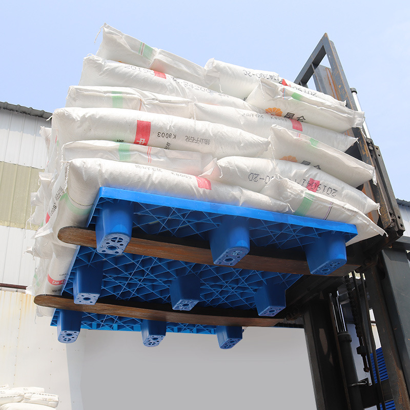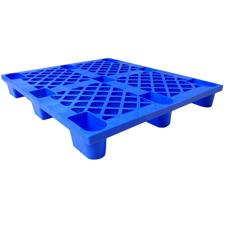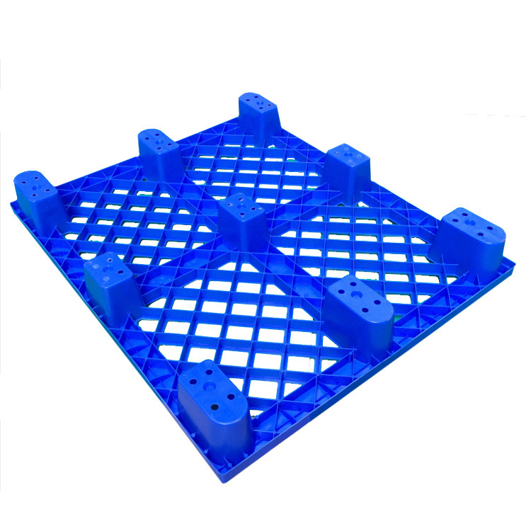 九脚网格塑料托盘的九脚网格托盘其底部是有‘九个腿’组成的,表面为‘网格’状,顾行业为方便称其为九脚网格托盘,九脚网格托盘大多型号的都为轻型的塑料托盘,不易用于上货架或者较重货物的周转使用,大多情况下九脚网格塑料托盘都是用来仓库货物垫仓板防潮使用,对于轻型货物的周转也可。