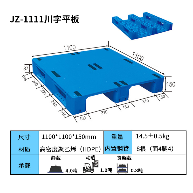 1100*1100*150mm川字平板塑料托盘