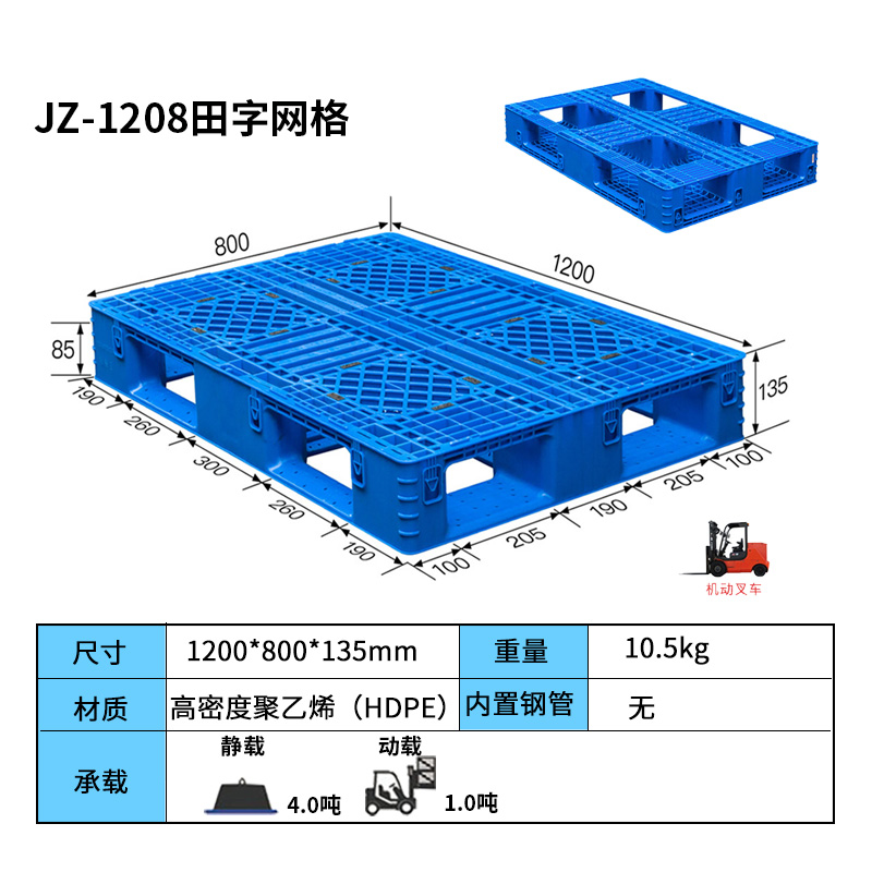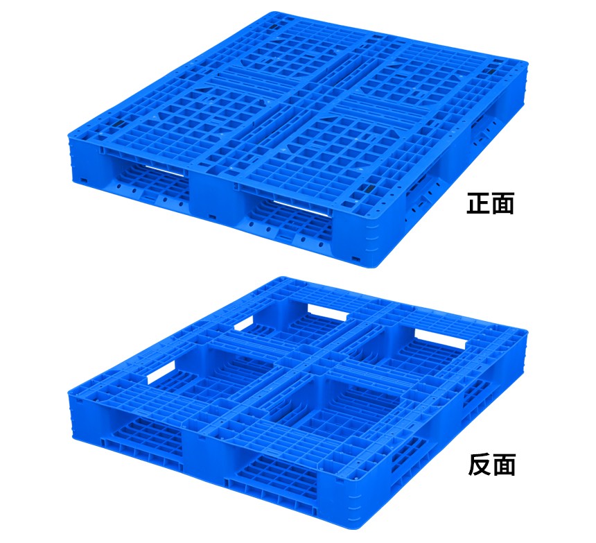 田字设计,双层加强受力,增加托盘受力强度,使受力更加均匀,结构牢固,不易变形。完美无障碍平地堆码,叠放易于整理存放,也可节约存储空间,符合空间资源合理配置要求。可四向进叉,操作方便,多面进叉可防止托盘变形,增加使用寿命网格表面在产品置放部位安装防滑块,提高产品使