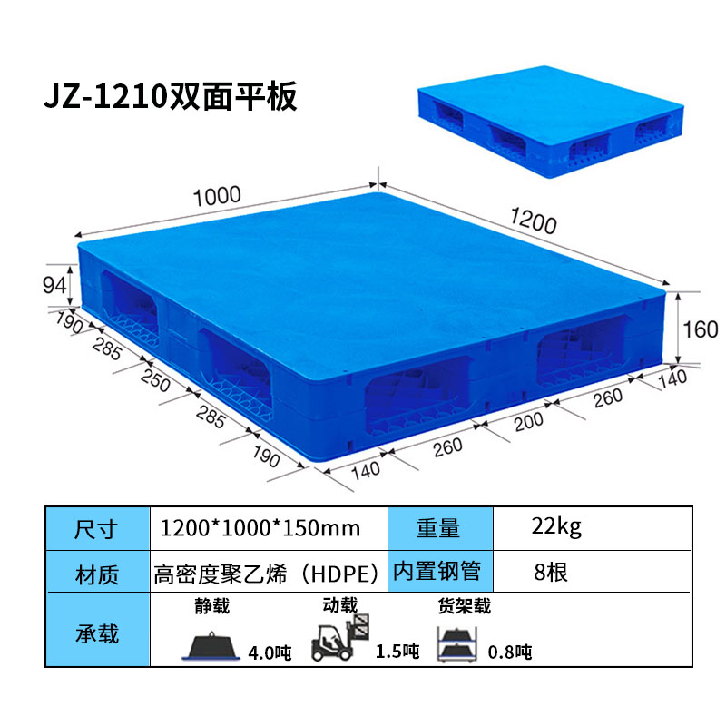 双面平板塑料托盘正反两面结构相同,均为平板状。这种托盘的设计使得它可以两面使用,提供了更大的灵活性和耐用性。双面平板塑料托盘的表面可以是网格状或平板状,具体取决于使用需求。它的结构允许它在化工、食品饮料、面粉深加工等多个行业中广泛应用,尤其是在需要频繁更换使用面的场合,如码垛和货物运输过程中,显示出其独特的优势。此外,双面平板塑料托盘还通过了ISO9001:2000质量体系认证,保证了其质量和性能的可靠性