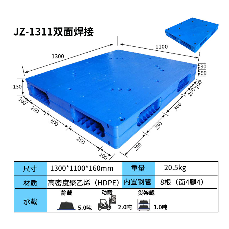 双面网格塑料托盘其特点是正反两面的结构相同,均为网格状,因此两面都可以使用,故被称为双面网格塑料托盘。这种托盘通常应用于食品厂、化工厂、化肥制造、冷库等行业。双面网格塑料托盘的插孔较低,因此不适合使用地牛拖车,在选择使用时需要特别注意。根据成型工艺的不同,双面网格塑料托盘可以分为一体成型双面网格