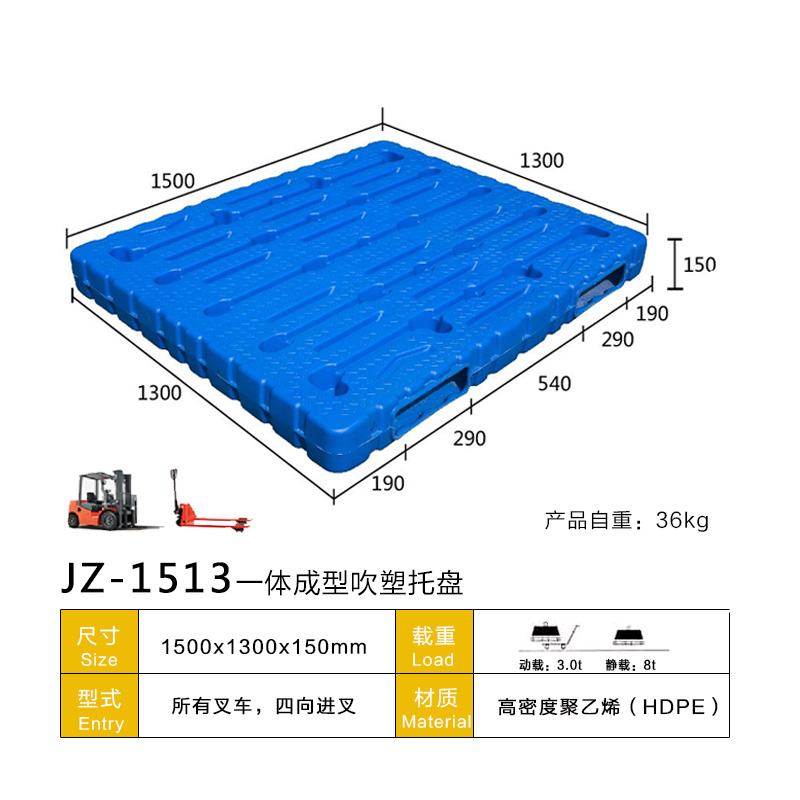 双面吹塑托盘采用吹塑成型工艺,通常需要使用大型的中空成型机进行生产。这种托盘的设计允许其正反两面均可使用,因此被称为双面塑料托盘。双面吹塑塑料托盘的优点包括承载能力强、使用寿命长,这得益于其内部设计了X轴向纬筋、Y轴向纵筋、Z轴向竖筋,以及内部至少包含两个支撑架,面板的两头向内折回,从而增强了其承载